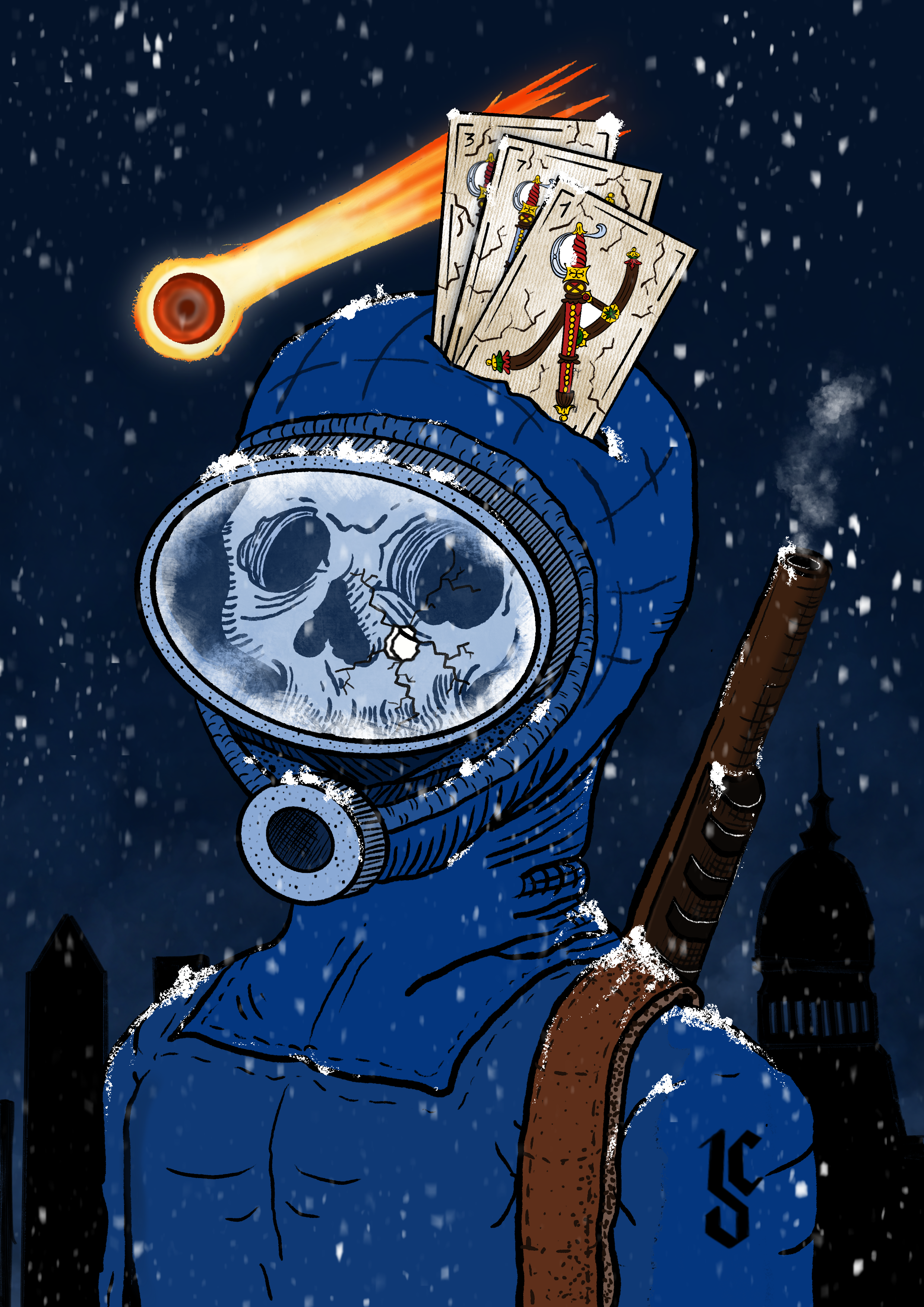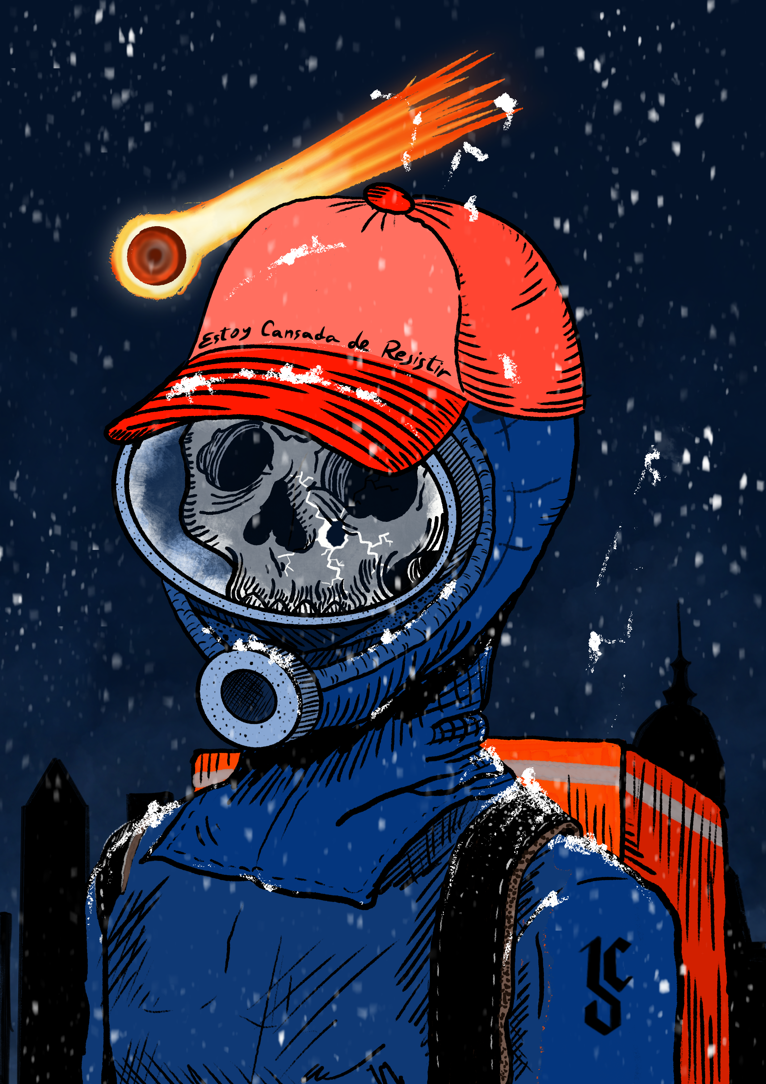 Este trabajo es un pequeño homenaje a El Eternauta de Oesterheld y Solano López, reinterpretado desde una mirada contemporánea y migrante. Inspirado en la adaptación audiovisual de 2025, retomo a Juan Salvo como símbolo de resistencia frente al desastre, y lo ubico junto a una nueva figura: el repartidor inmigrante, inspirado en tantos hermanos venezolanos que, como yo, transitan el duro proceso de migración. A través del frío, la nieve y el trazo, dibujo cuerpos que resisten, cargan y habitan una ciudad hostil, tejiendo una memoria gráfica donde el cómic, la historia y lo personal se cruzan.