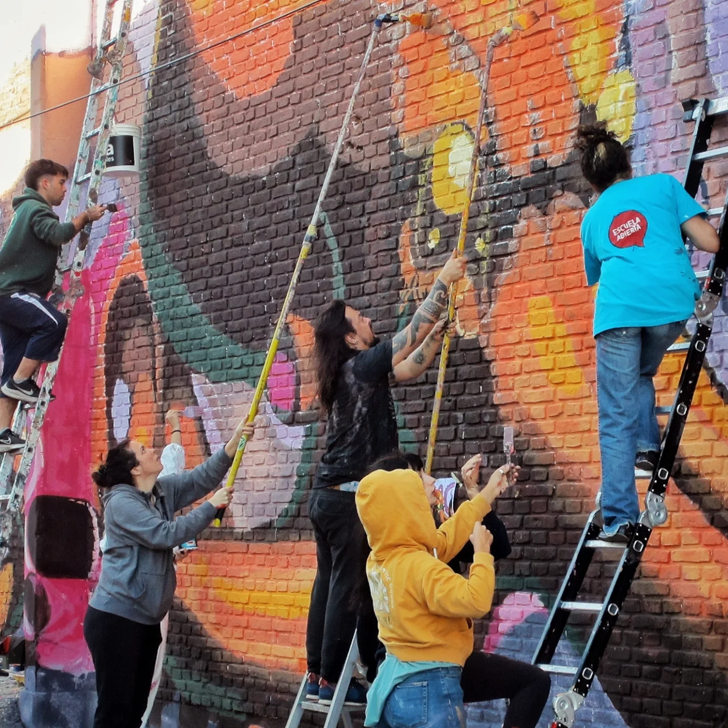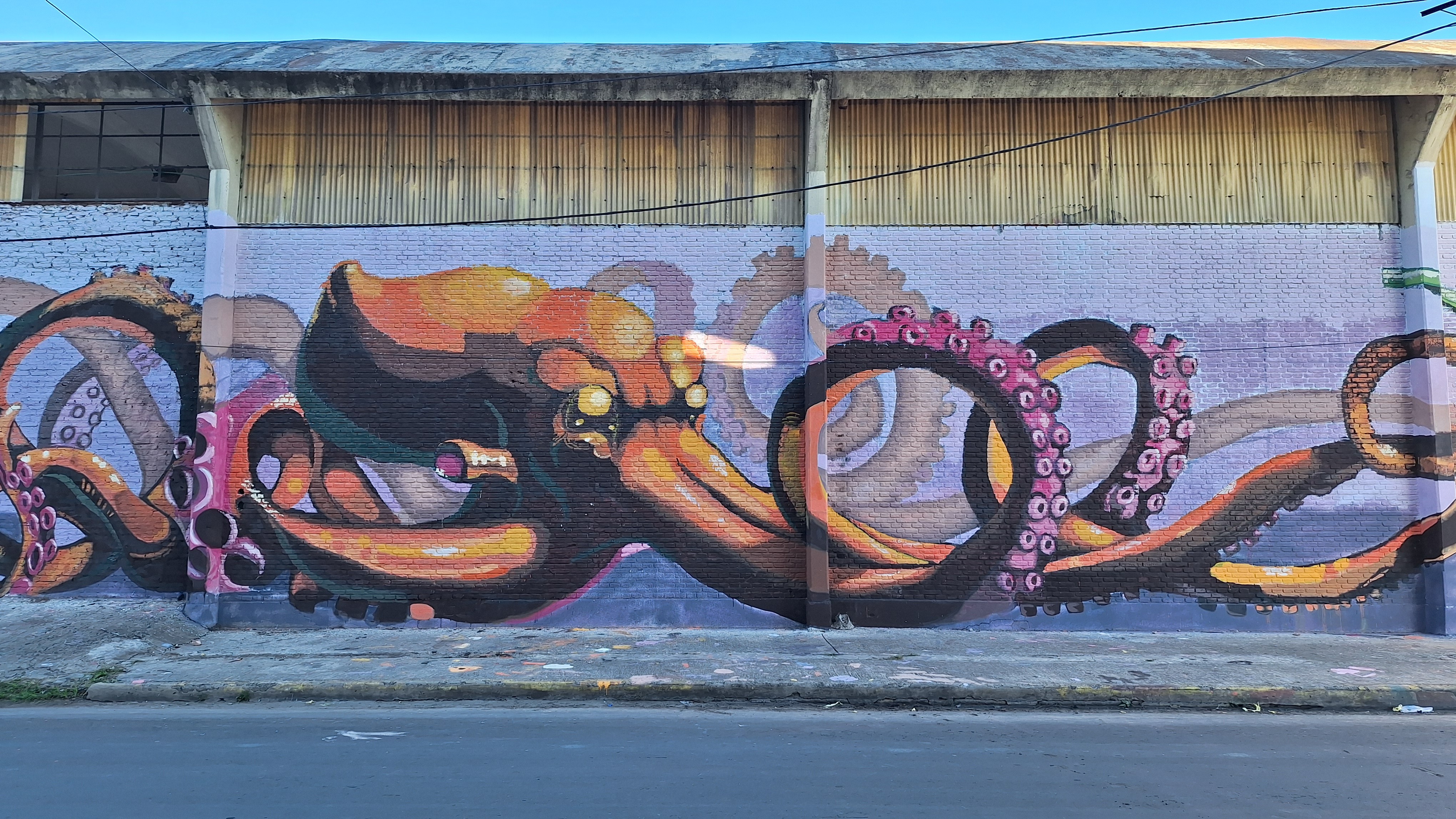 Cada vez que le comentaba a alguien que le estaba dedicando un rato de mis sábados a pintar un mural en Isla Maciel, la mayoría de las personas abrían los ojos, expresando su preocupación por aquel lugar ubicado al otro lado del riachuelo, cerca de La Boca. ¿Qué lugares nos habremos perdido de conocer por los ojos y comentarios de los demás? Este lugar se llama isla sin serlo, tal vez porque está apartado del continuo de la ciudad y rodeado por viejas fábricas que el tiempo ha dejado demoler. Conocí gente que quiere ser un punto de encuentro entre el agua y la tierra, entre estar lejos pero conectados y, sobre todo, en búsqueda constante de ser visibles y existir.